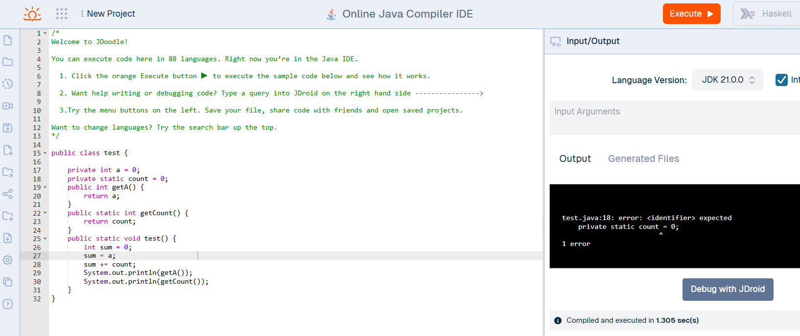 그 중 jdoodle 이라는 것이 있어, 간단히 사용하기 편하다.
